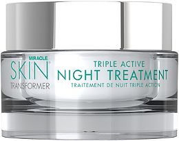 my nighttime routine just got easier with Miracle Skin Transformer Triple Active Night Treatment. It combines the power of 3 multifunctional night creams, into one jar. It is designed to exfoliate, moisturize, fight daily environmental damage, and deliver powerful anti-aging benefits.The M3 Complex, helps resurface skin’s texture, minimize discoloration, and repair the appearance of photo damage. It will diminish the appearance of lines and wrinkles, improves skin’s elasticity, and helps firm and tone overnight. Your skin is quenched with powerful hydrators, derived from sun flowers, proven to improve hydration by up to 65% within the first three hours. It is not greasy or heavy, yet strong enough for noticeable results. So get into bed easy, and relax….